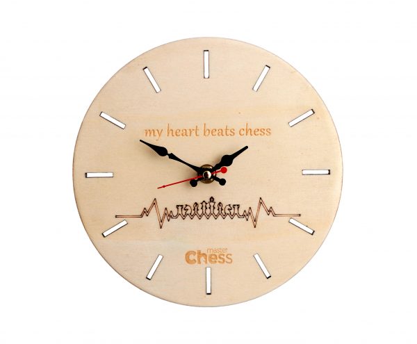 Ceas de perete cu diametru de 20 cm, realizat din lemn de plop cu o grosime de 4mm, cu model unicat tema șah. Un excelent cadou pentru iubitorii de șah!